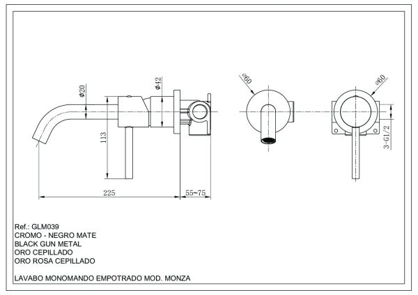 Grifo de lavabo empotrado monomando cromado serie Monza