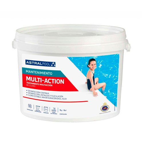- Tratamiento de mantenimiento: 1 tableta de Multiacción 250 gr por cada 25 m3 de agua cada 10-15 días